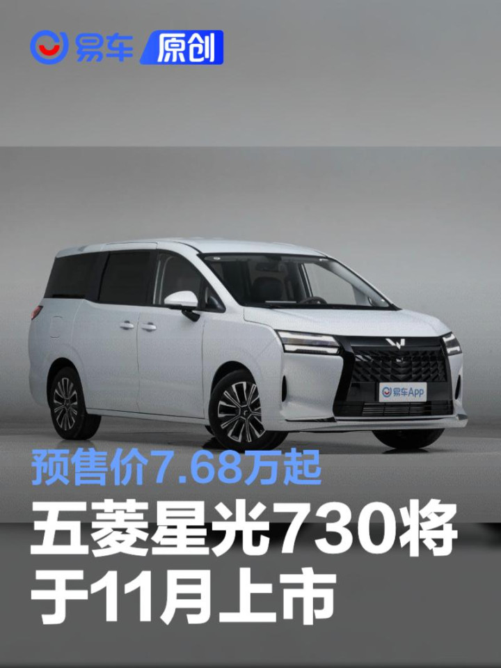 易车讯11月3日,五菱汽车宣布旗下全新MPV车型星光730将于11月正式上市。五菱星光730于10月15日开启预售,预售价区间7.68-11.28万元,限时置换补贴价区间7.38-10.78万元。官方数据显示,五菱星光730目前预售订单已经突破15000台。