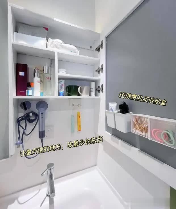 我家镜柜中规中矩,加钱做了灯带、除霜等功能,结果根本没用,还浪费好几百块钱。参观邻居家时,发现她家镜柜是基础款,没附加功能,但没做底板。打开镜柜我惊呆了,里面搭配几个插座,吹风机、剃须刀等可直接固定在墙上,插座带开关,用完吹风机直接放回去,节省空间又实用。而且镜柜后面没做背板,又释放不少空间,特别能装。我跟邻居家镜柜差不多大,但她家装的东西比我家多多了,超实用。