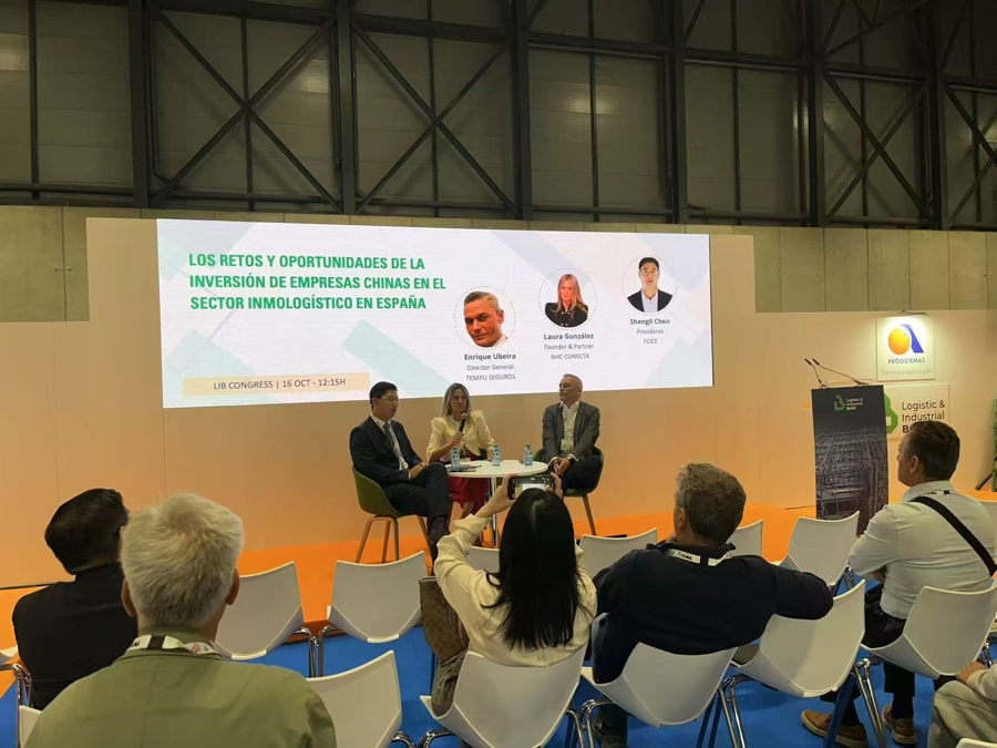 劳拉(中)在西班牙举行的一个论坛上与嘉宾对谈中西关系